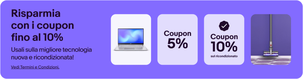 In sintesi: su eBay.it trovi nuovo e usato, puoi fare offerte in asta o acquistare subito, sfruttare coupon, eventuali pagamenti rateali via PayPal, e hai tutela grazie alla Garanzia cliente eBay.