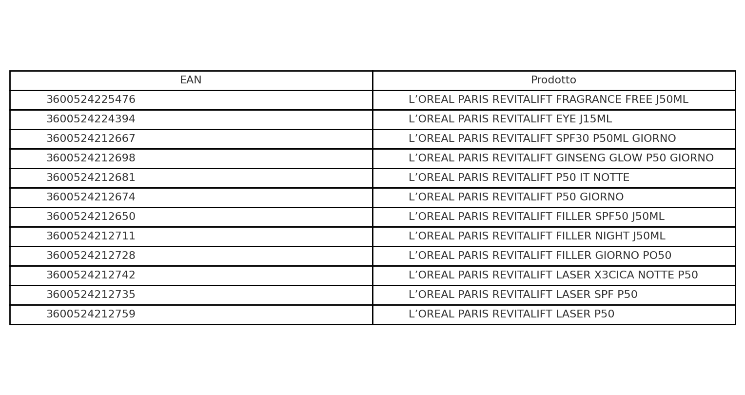 I prodotti potranno essere acquistati presso punti vendita fisici e online in Italia e San Marino che dispongono delle creme Revitalift coinvolte. Non è necessario che i punti vendita espongano materiali promozionali per partecipare.
